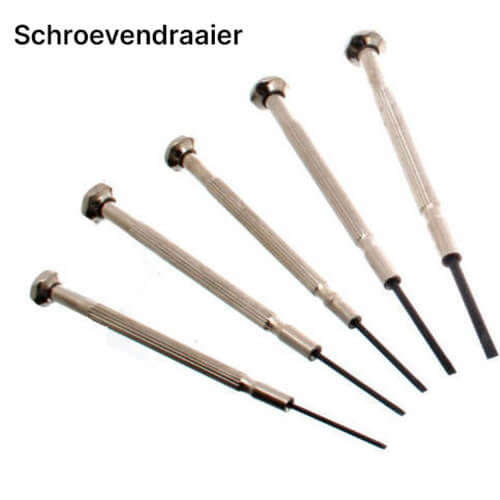 Als je horloge kleine schroeven heeft die verwijderd moeten worden om de achterkant horloge te openen, vind je ook een kleine schroevendraaier in de set.